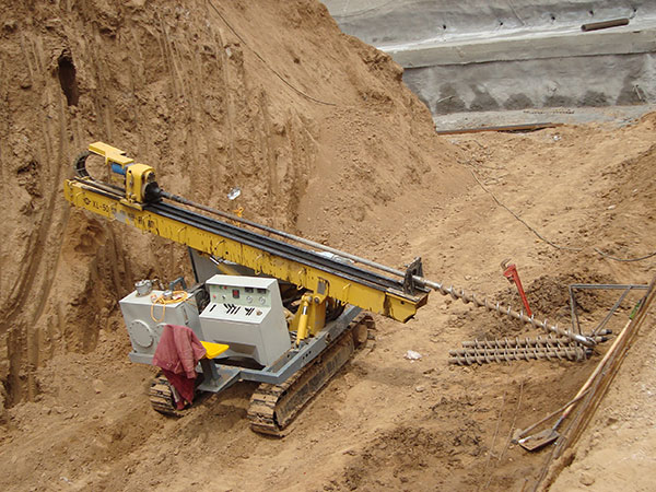 官底鎮(zhèn)某工地使用西探裝備XL-50型旋噴鉆機進行錨桿錨索作業(yè)。
