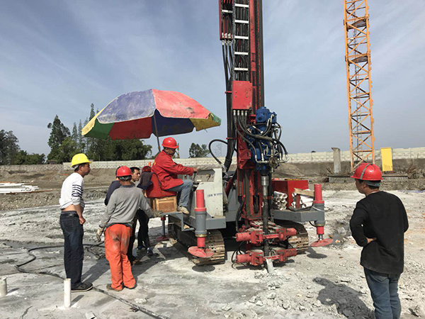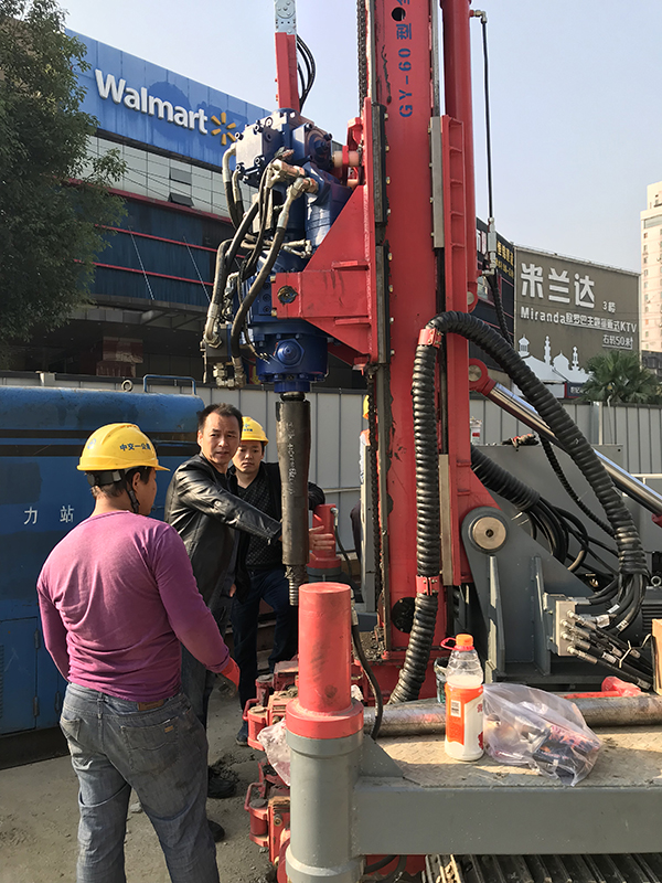 某工地市政液動(dòng)沖擊旋噴引孔