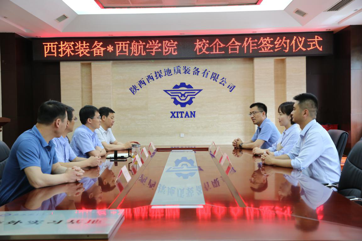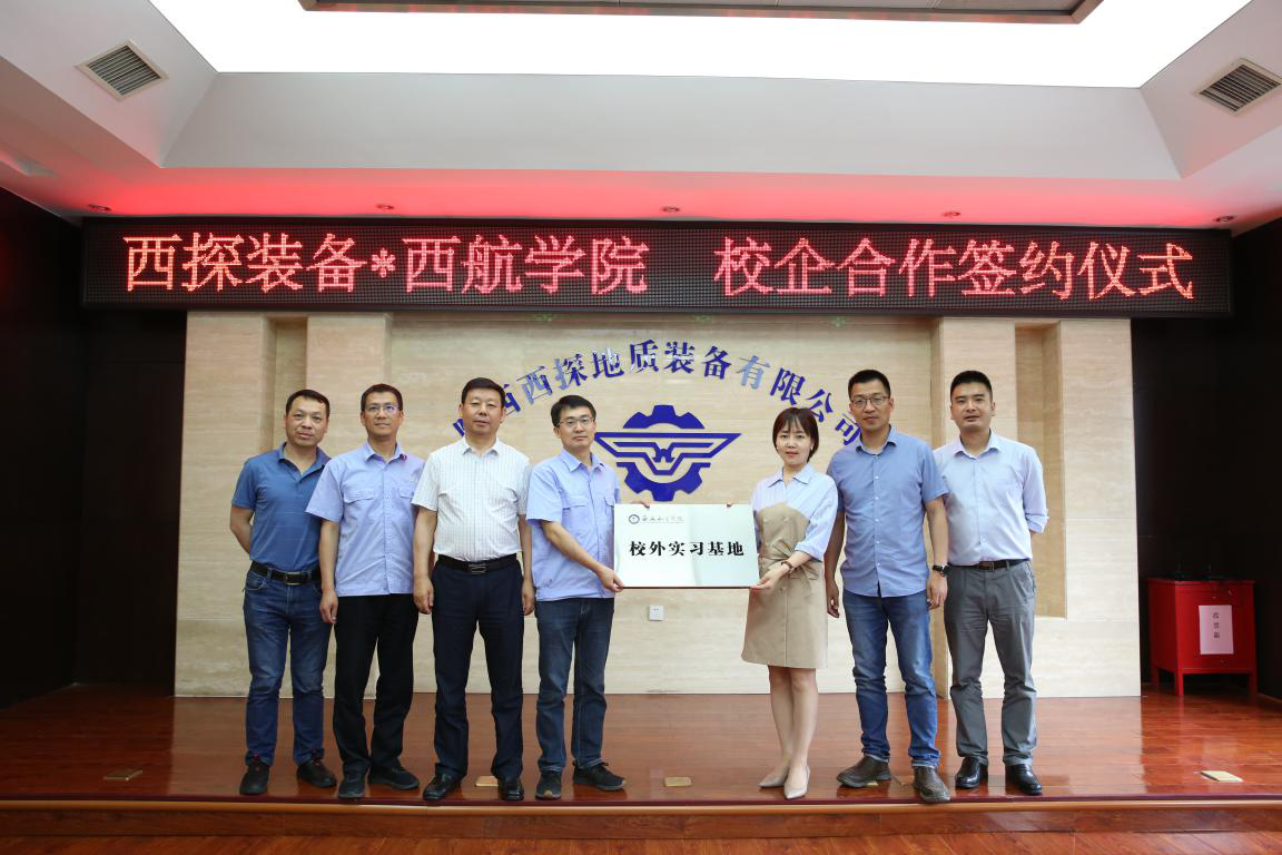 6月3日,陜西西探地質裝備有限公司(后文簡稱西探裝備)與西安航空學院電子工程學院簽署校企合作協議。西探裝備黨委書記、執行董事、總經理羅帥訓,黨委副書記、副總經理秦鵬等,西安航空學院院長畢楊、副院長肖海峰等參加簽約、授牌儀式。